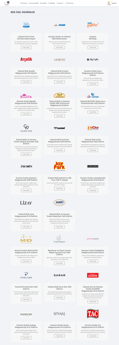 Bize Özel sekmesiyle hem çalışanlarımız hem de aileleri özel indirim ve fiyat avantajından faydalanabilecekler. Ayrıca Çalışanlarımız Bize Özel sekmesiyle, Vialand Tema Park için Ücretsiz Rezervasyon yapabilirken Vialand Birthday ile Doğum Günü Organizasyonları için özel teklif alabilecekler.