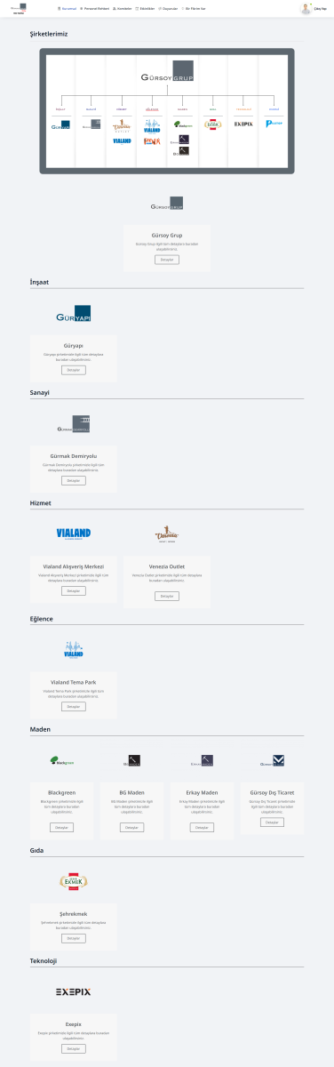 Şirketlerimiz sekmesinden çalışanlarımız kendi şirketleri ile ilgili web sitelerine erişebilecekler.