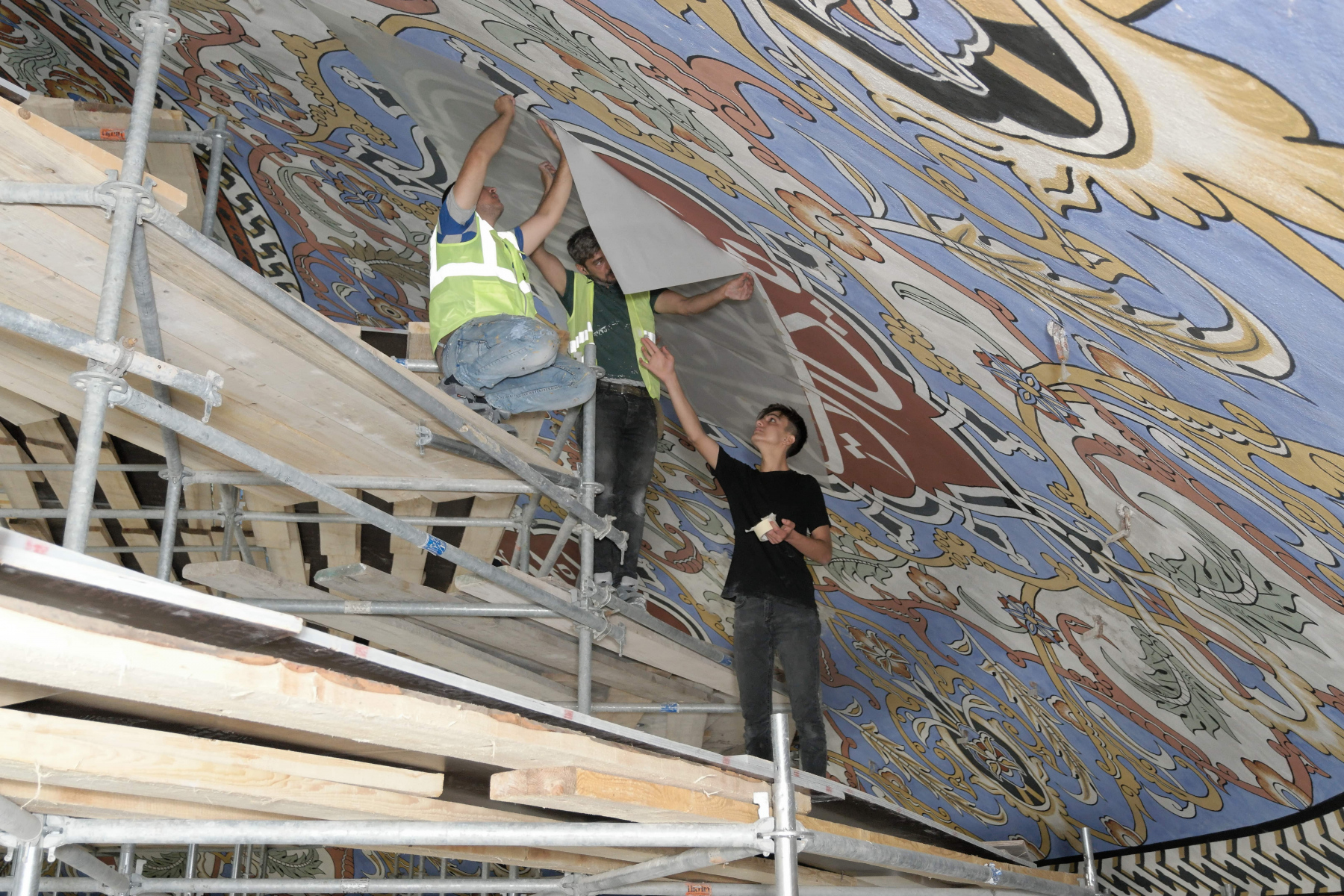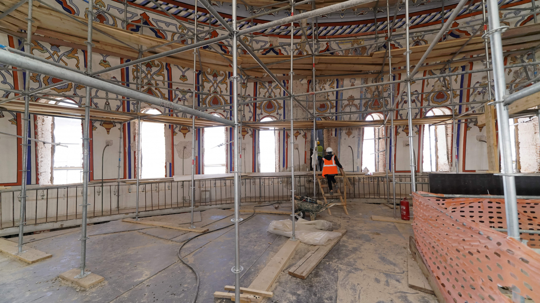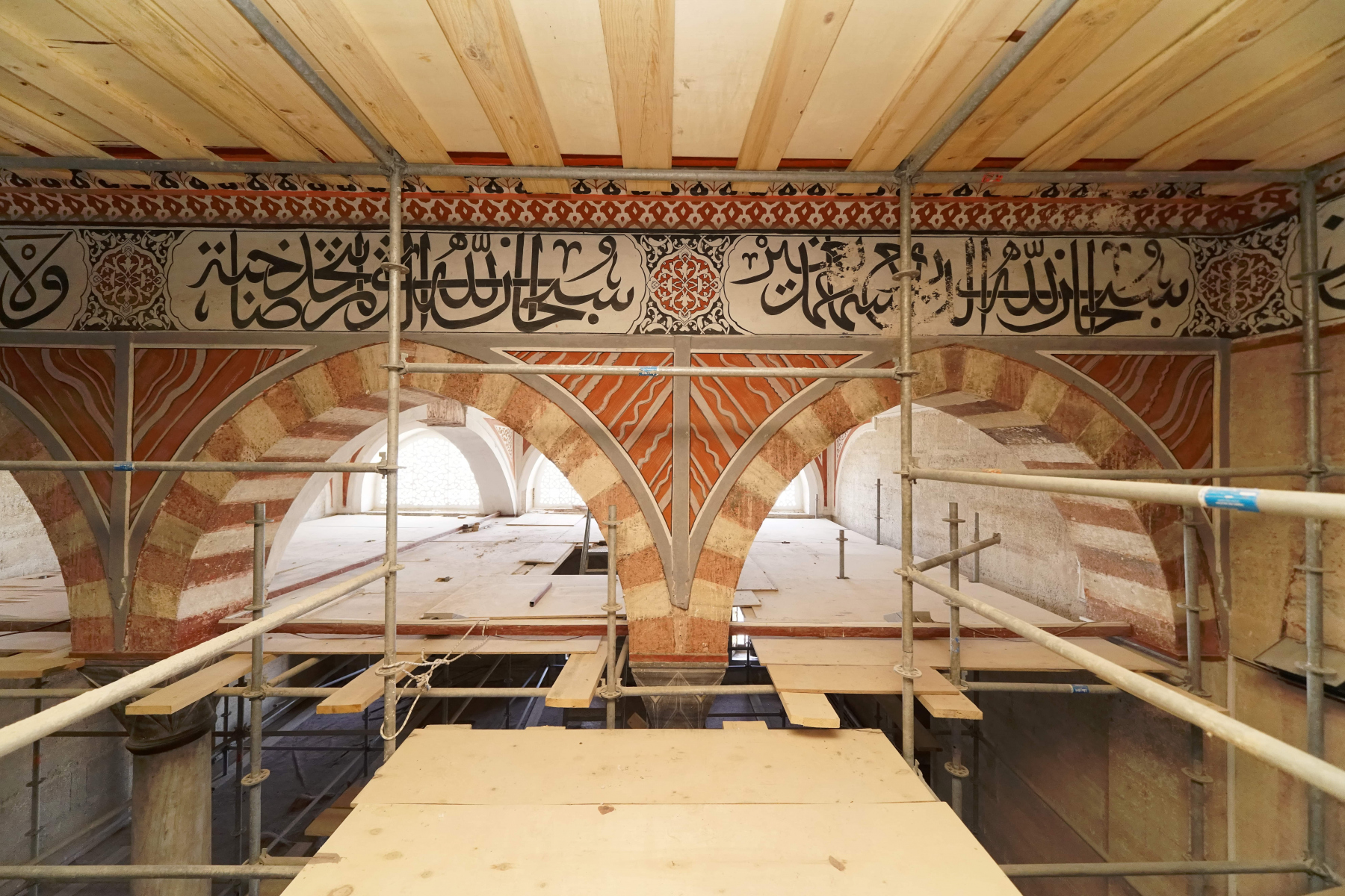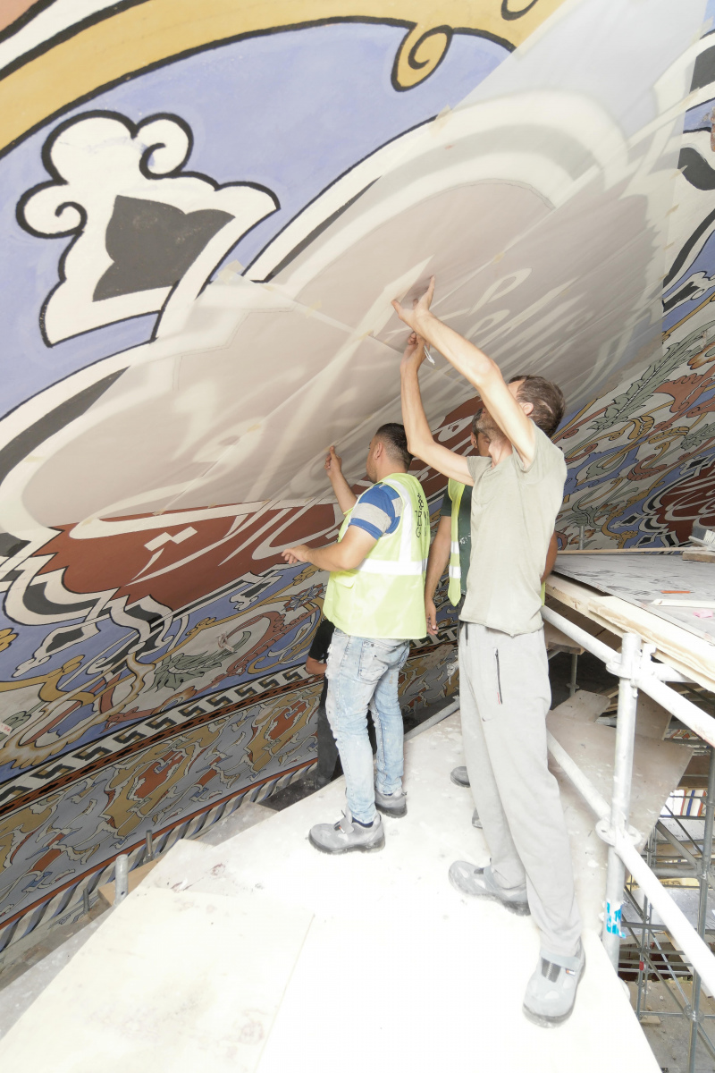 Mevcut bezeme yüzeylerinde yapılan araştırmalar sonucu ulaşılan özgün kalemişi ve Malakari (Kabartmalı alçı süslemeler) ortaya çıkarılarak ihya edilmektedir. Özgün olmayan bölümler raspa edilerek, özgün alanlar referans alınıp bilim kurulu tarafından uygun görülen motif, malzeme ve teknikle yeni bezeme uygulamaları yapılmaktadır.